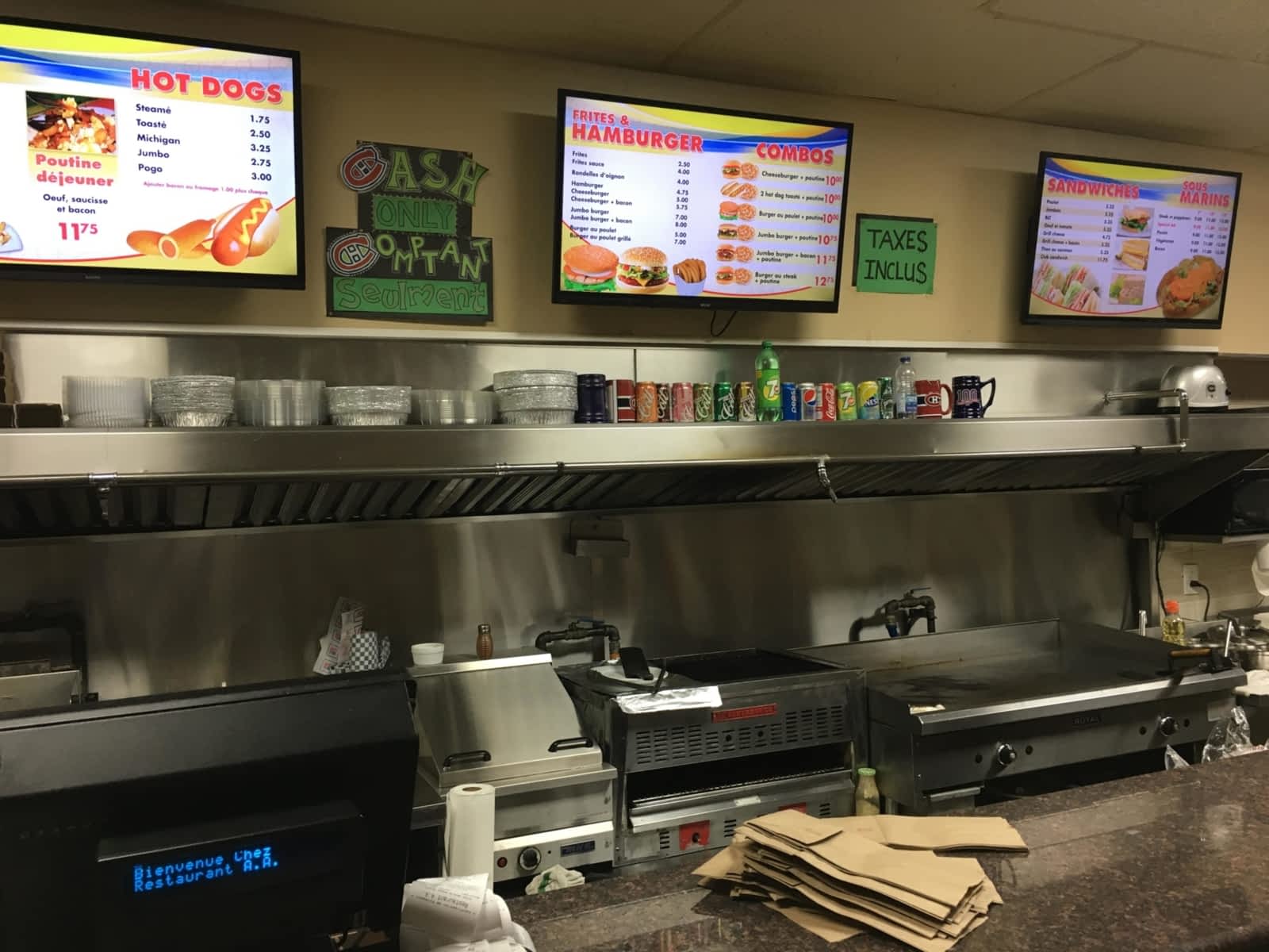 A A Restaurant est un casse-croûte accueillant. Découvrez un menu proposant des sandwiches, une variété de hamburgers et un menu de déjeuners à moins de 10 $. L'atmosphère de cet établissement est décontractée. A A Restaurant est ouvert en soirée tous les jours de la semaine.